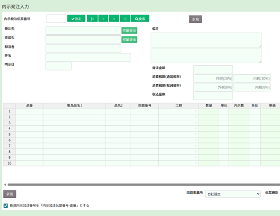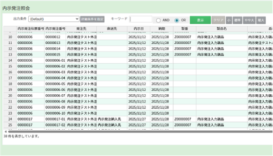 MRP発注予定・製造予定から内示発注書を発行できます。