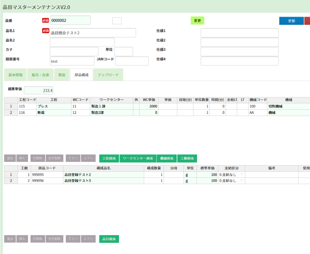 詳細は 部品構成マスターメンテナンス をご確認ください。