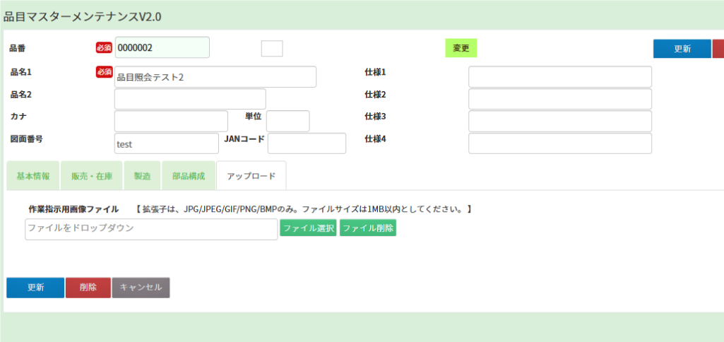 | アップロード | 作業指示用画像ファイルのアップロード |