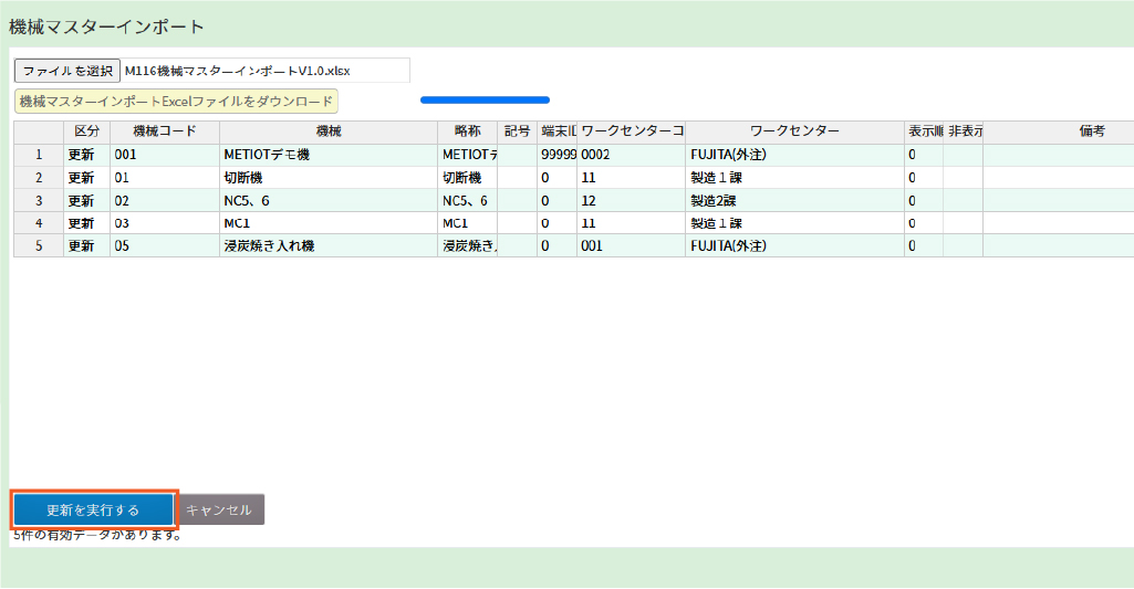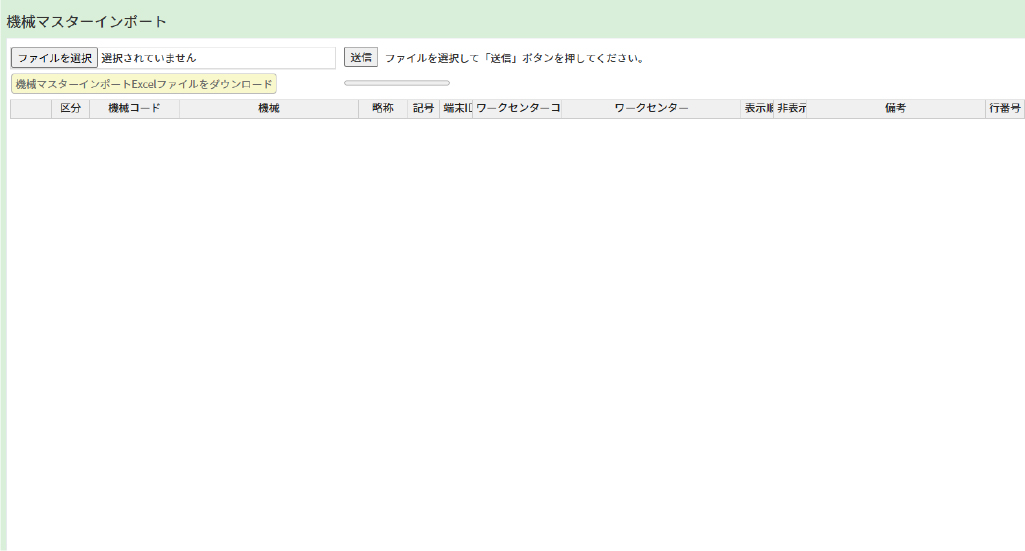 【画面の場所】メニュー > システム設定 > 機械マスターインポート