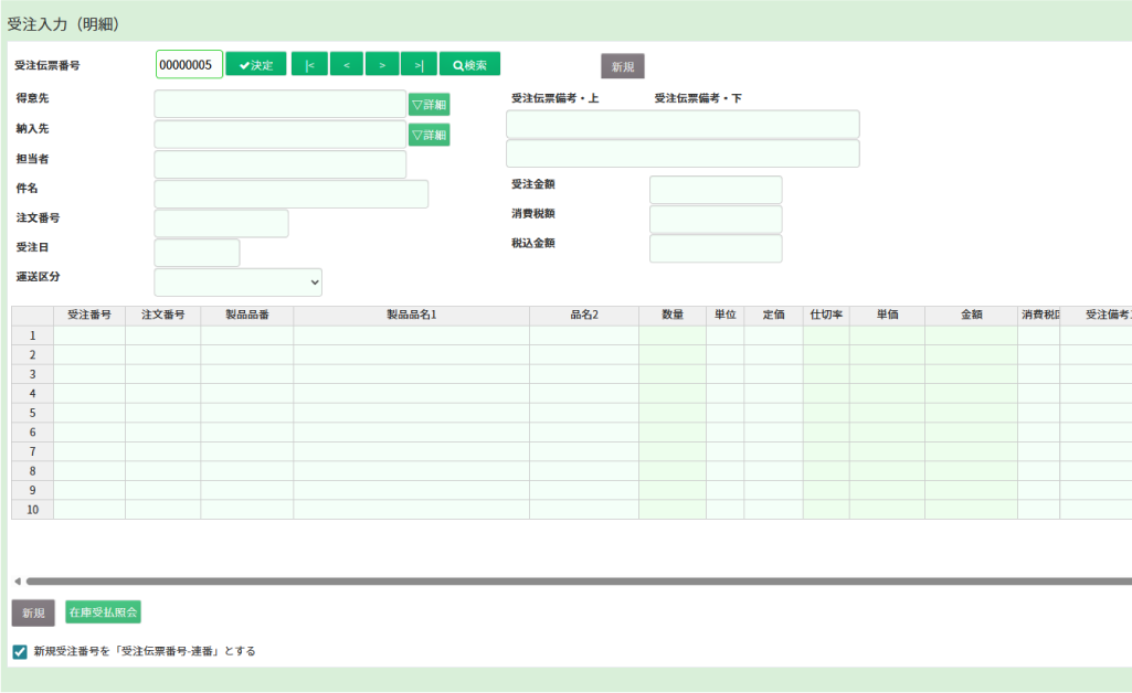受注番号任意の受注番号を入力します。空白で登録された場合、自動で採番されます。