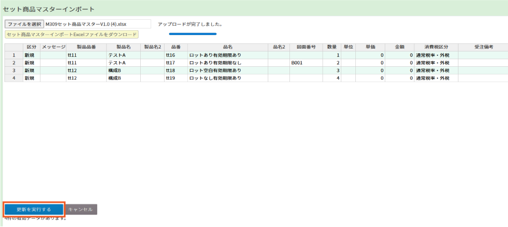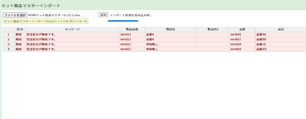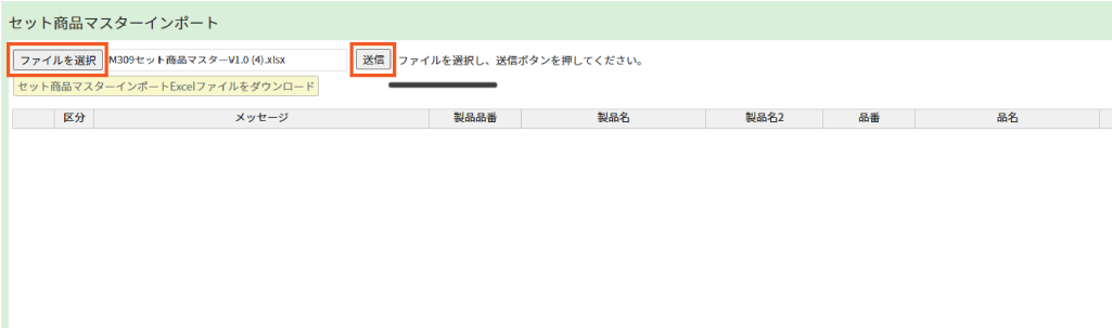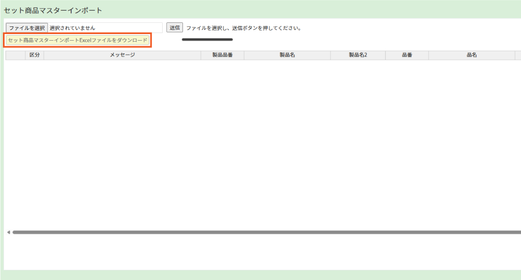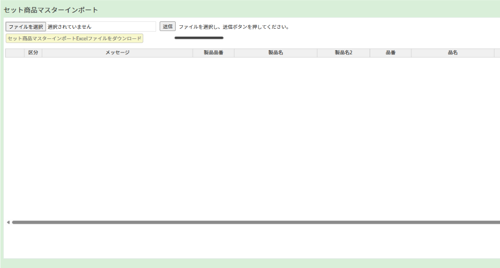 【画面の場所】メニュー > 基準情報管理(2) > セット商品マスターインポート